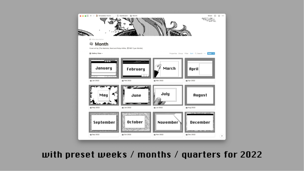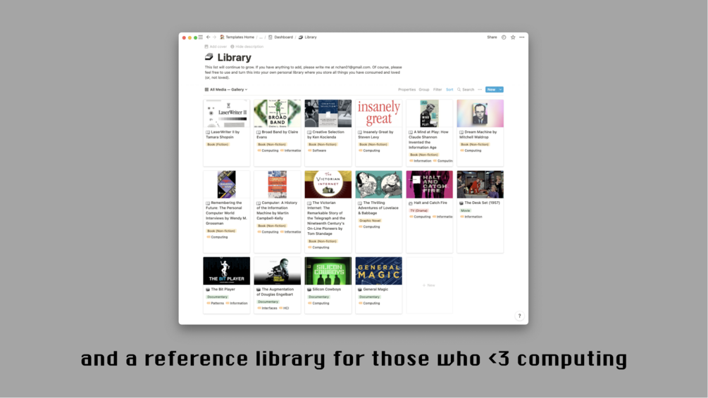 For computing nerds and those nostalgic for HyperCard, this template marries the best of both worlds (Notion + HyperCard) into one. Icons and graphics are pulled from the HyperCard Graphics Pack and customized for this template. Hidden within all the dashboard and databases are little easter eggs and recommendations for further reading, watching & exploring if you are interested in the history of computing and all that goes along with it.
